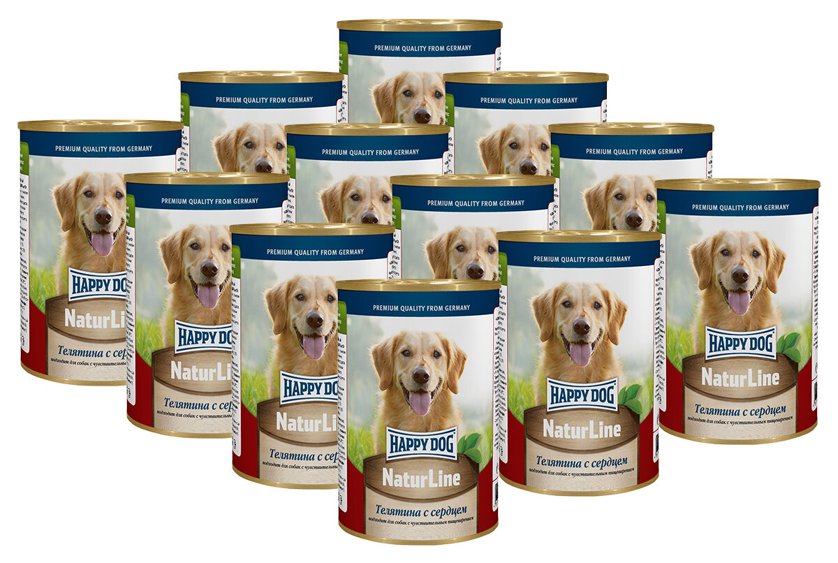 Happy Dog Natur Line влажный корм для взрослых собак с телятиной и сердцем - 410 г х 12 шт