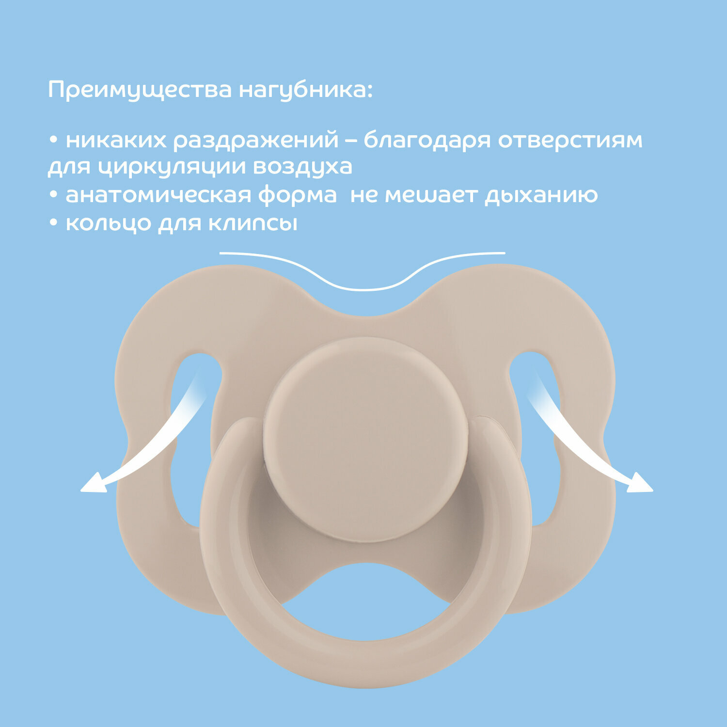 | Дополнительная информация | не содержит бисфенол-А (BPA free); скошенный силиконовый сосок; отверстия в нагубнике для циркуляции воздуха; кольцо для клипсы-держателя |