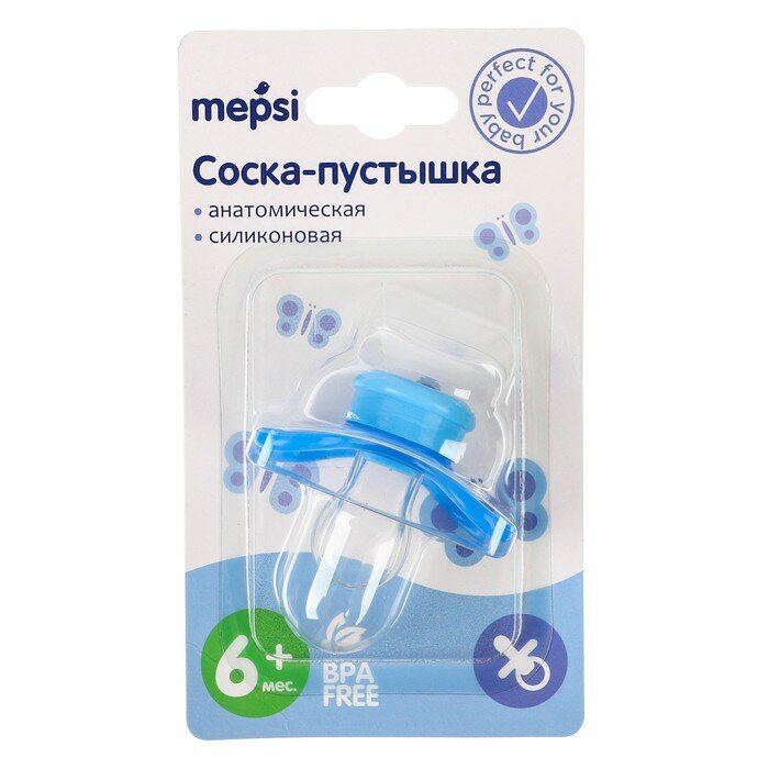 Купить Mepsi Соска - пустышка силиконовая MEPSI анатомическая 6+ мес., голубая