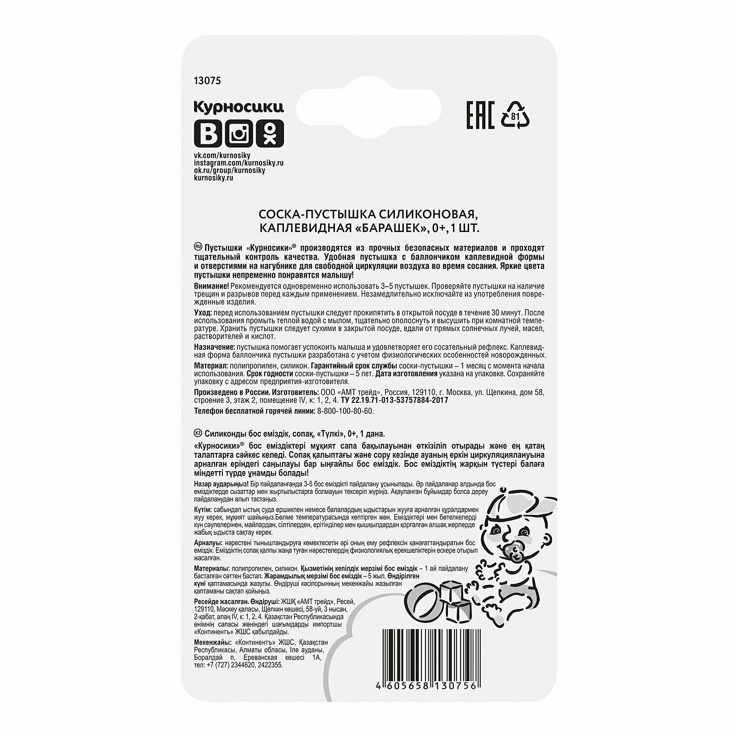 Курносики соска-пустышка силиконовая каплевидная Барашек арт.13075 0+ 1 шт интересное: