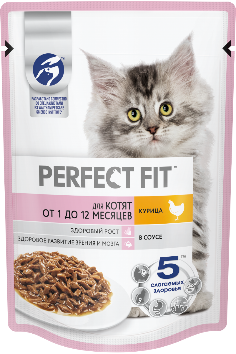 Корм консервированный для котят PERFECT FIT с курицей в соусе 1–12 месяцев, 75г интересное: