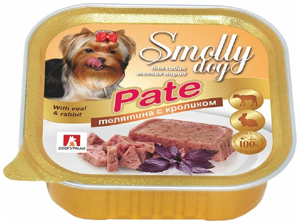 Зоогурман SMOLLY DOG PATE для взрослых собак маленьких пород паштет с телятиной и кроликом (100 гр х 15 шт)