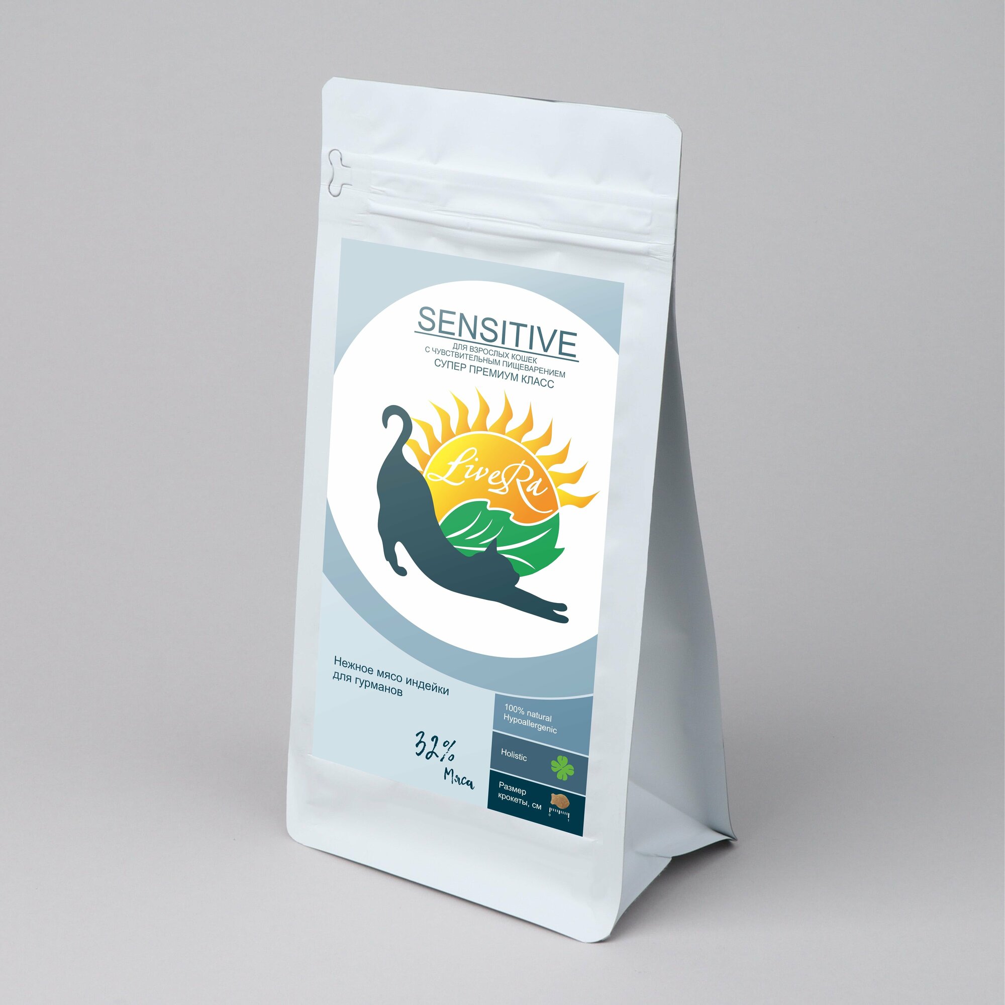Купить Корм сухой гипоаллергенный для кошек Ливера LiveRa SENSITIVЕ, чувствительное пищеварение с Индейкой и Сельдью (1,2кг)