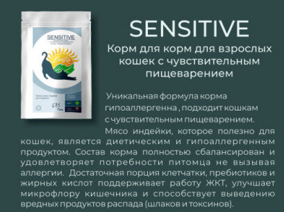LiveRA Sensitive Сухой корм для взрослых кошек с чувствительным пищеварением, индейка с рисом, 700г 0.7 кг