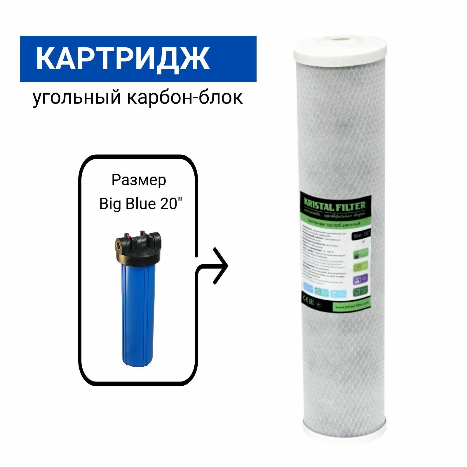 Картридж для фильтра воды, угольный, карбон блок, Big Blue 20, KRISTAL FILTER. Для магистрального фильтра. CP