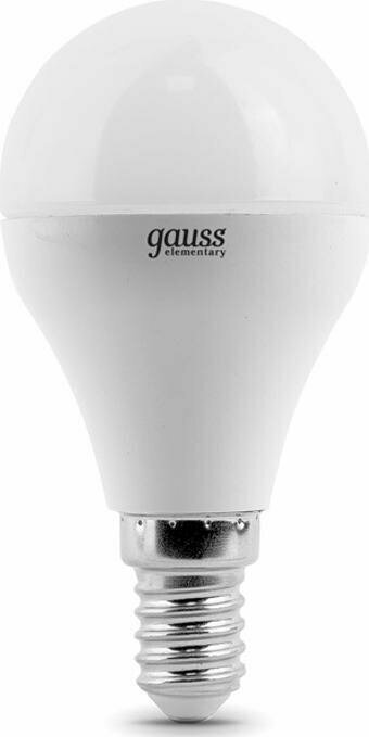 (15 шт.) Светодиодная лампочка Gauss Elementary Шар G45 E14 6W(420lm) 3000K 2K 82x45 матовая, пластик/алюм. 53116 Нейтральный белый. Цоколь E14