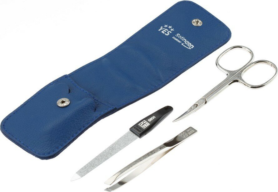Купить Маникюрный набор YES, 3 пр. Футляр: натуральная кожа, цвет синий, 9071