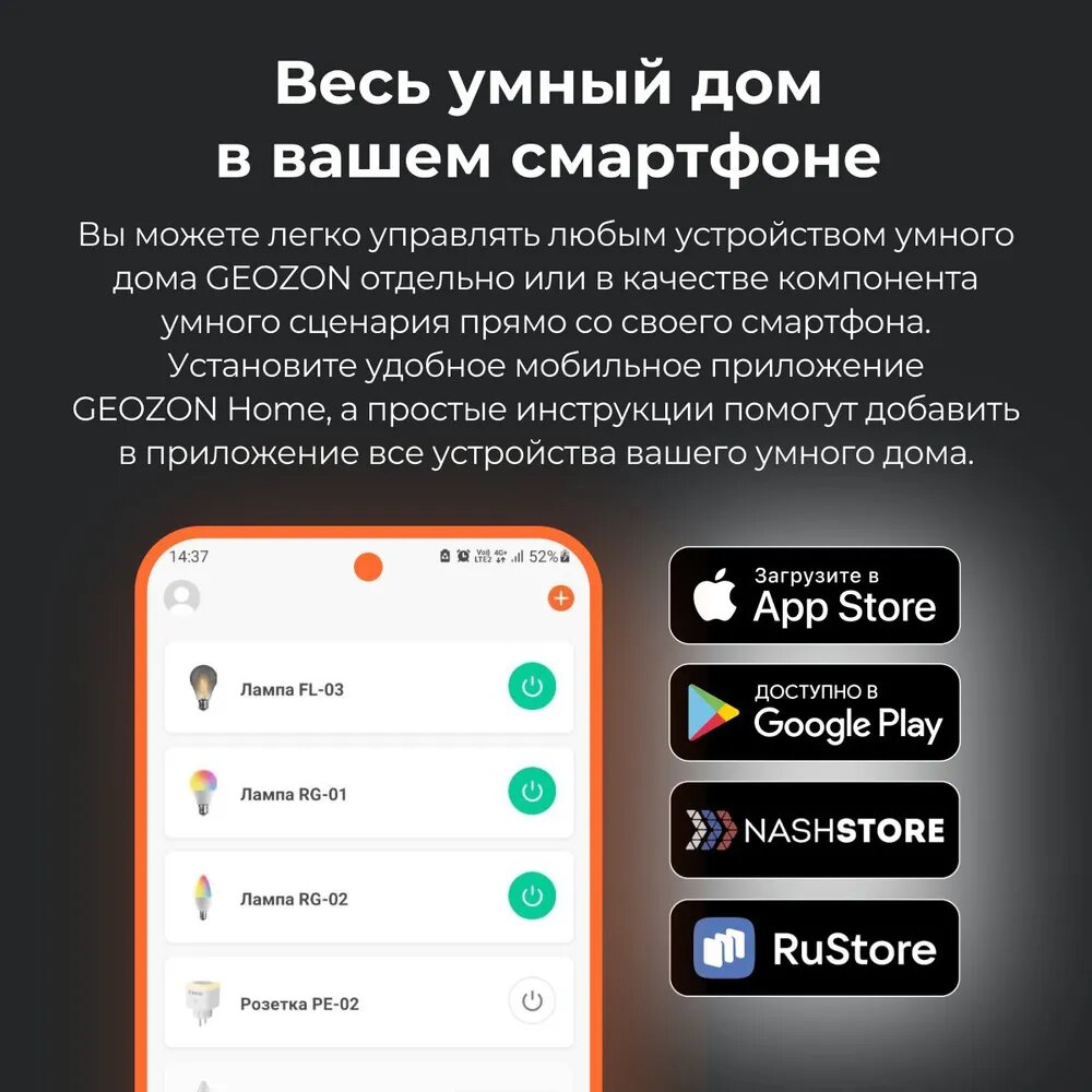 | Дополнительная информация | экосистема GEOZON Home, Голосовой помощник Маруся от Mail.ru Group; |