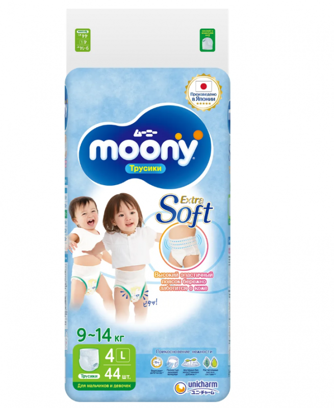 Купить Подгузники трусики детские Moony Extra Soft универсальные 4 L 9-14 кг, 44 шт