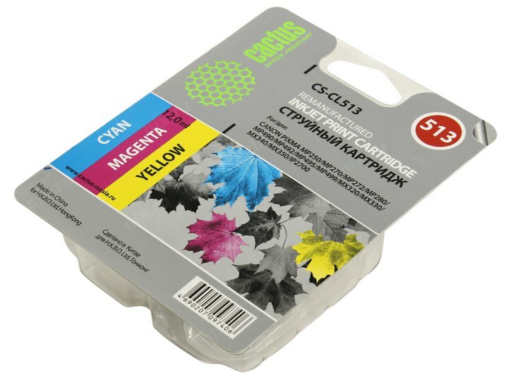 Картридж Cactus CS-CL513, совместимый, цветной, для Canon PIXMA-iP2700 / iP2702 / MP230 / MP240 / MP250 / MP252 / MP260 / MP270 / MP272 / MP280 / MP282 / MP480 / MP490 / MP492 / MP495 / MP499 / MX320 / MX330 / MX340 / MX350 / MX360 / MX410 / MX420