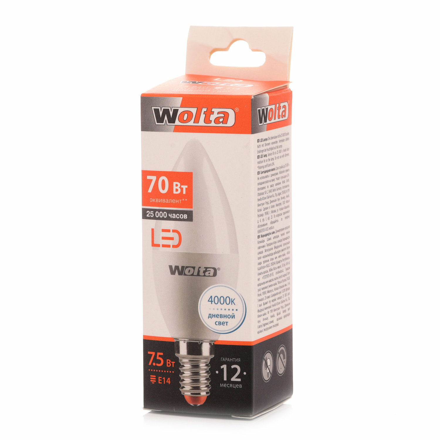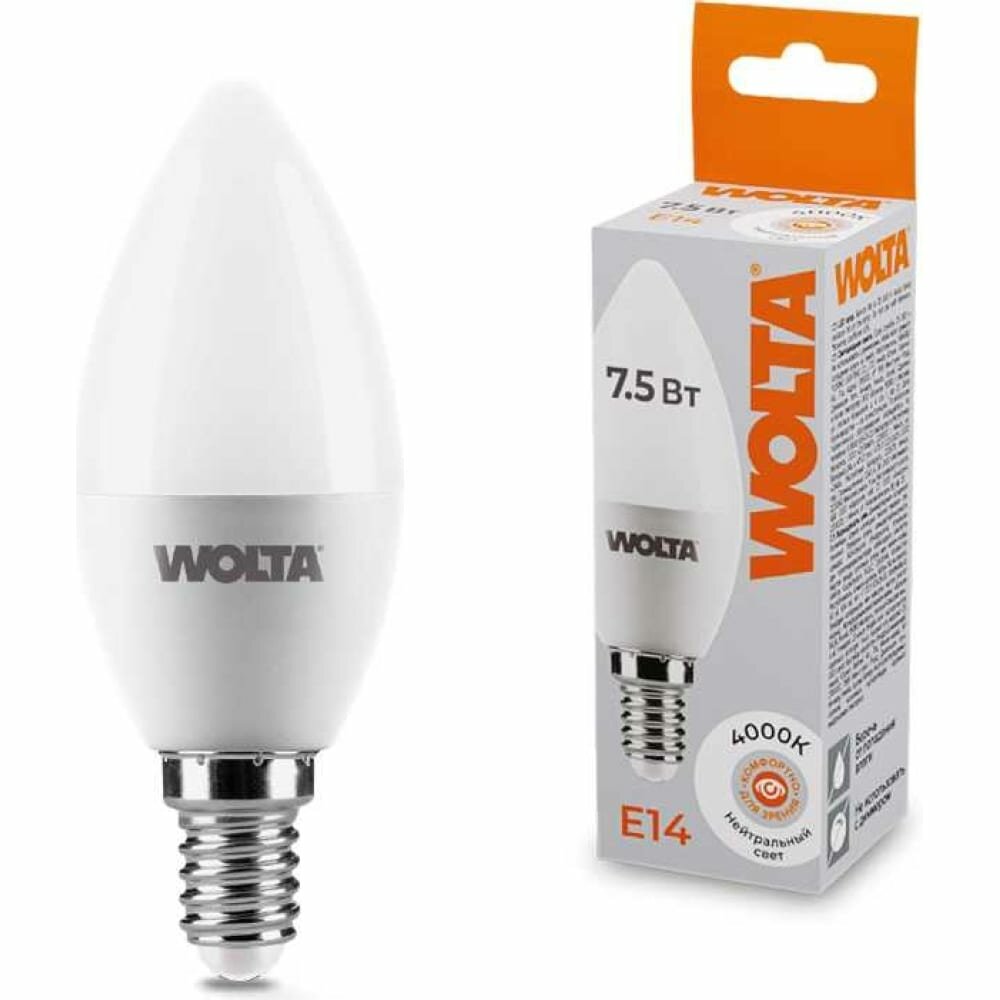 Купить Wolta лампа светодиодн. свеча C37 E14 7,5W(625Lm) 4000K 4K 4K 100X37 25SC7.5E14 (арт. 681444)