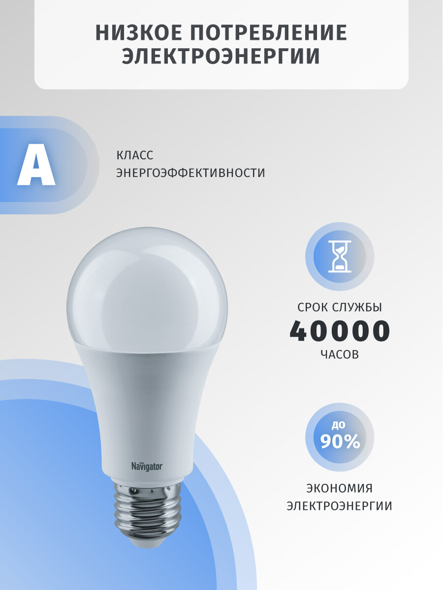 Лампа светодиодная Navigator 61282, E27, A70, 20 Вт, 4000 К