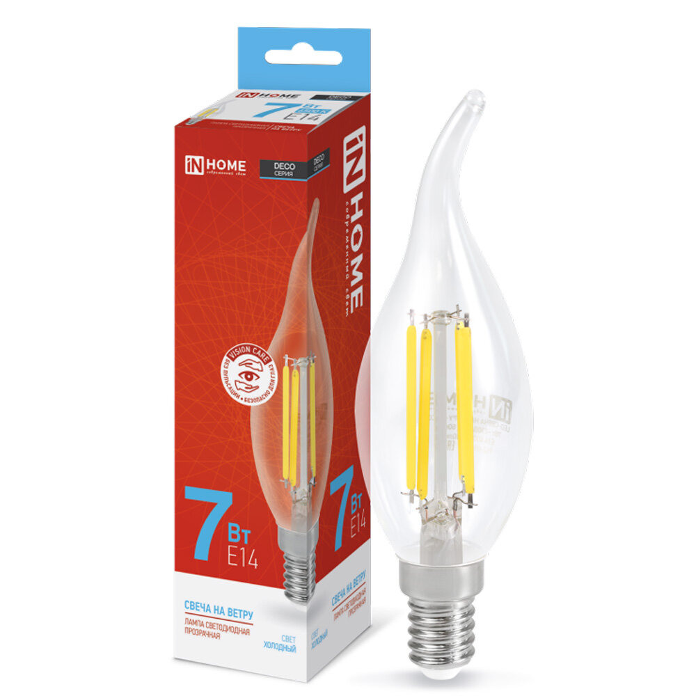 INhome Лампа светодиодная IN HOME led-свеча на ветру-deco, 7 Вт, 230 В, Е14, 6500 К, 810 Лм