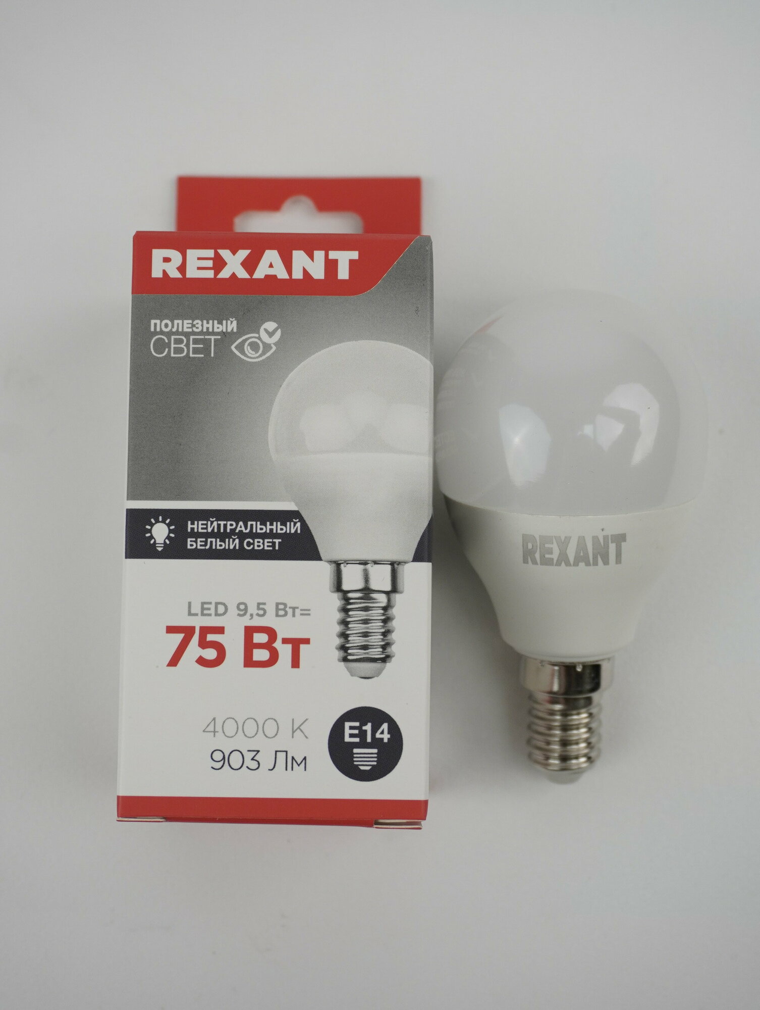 Лампа светодиодная Rexant Шар, Е14, 9,5 Вт, 4000 К, нейтральный свет