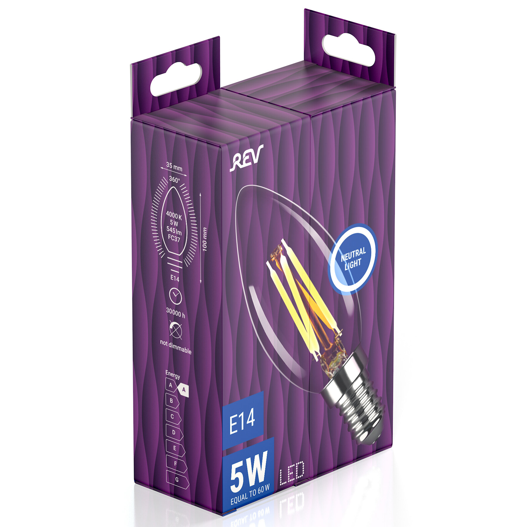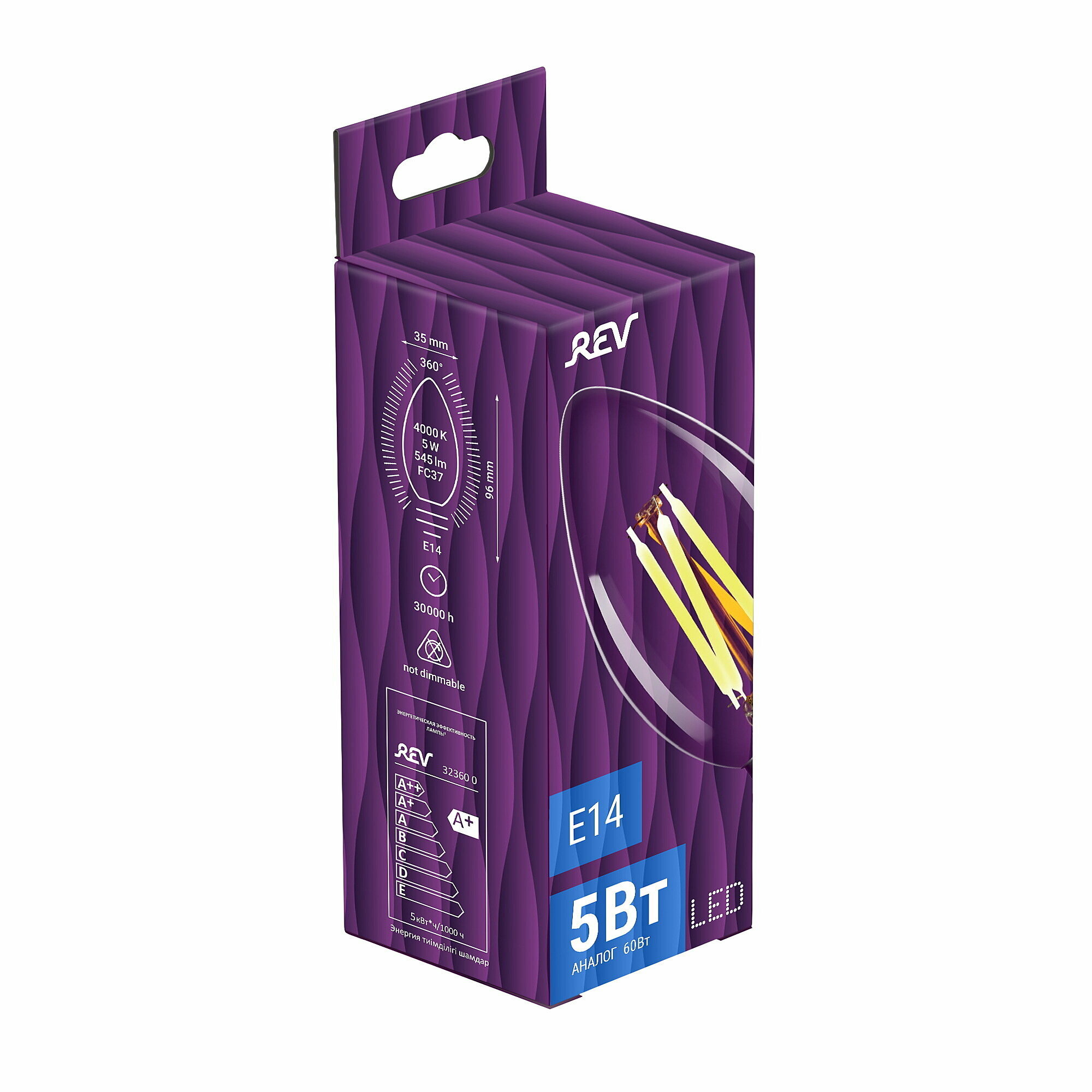 Упаковка светодиодных филаментных ламп 10 шт REV 32360 0, 4000К, Е14, FC37, 5Вт