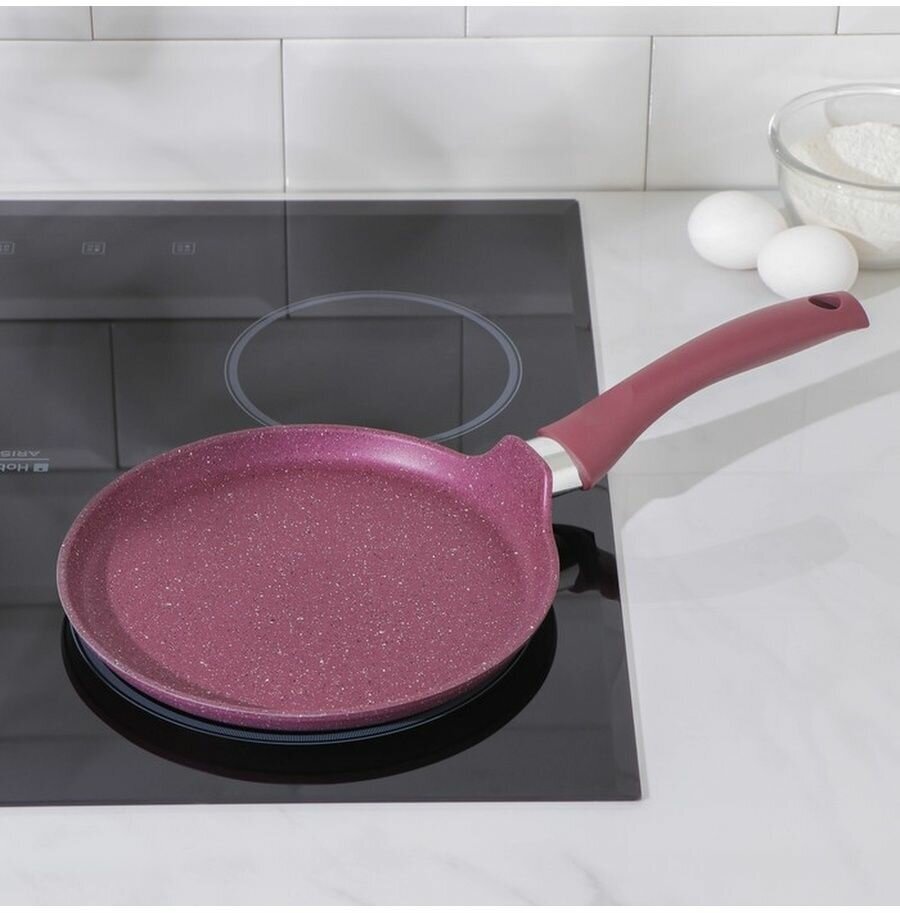 Сковорода блинная с антипригарным покрытием, материал литой алюминий, цвет розовый