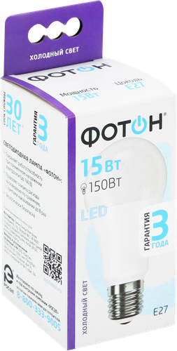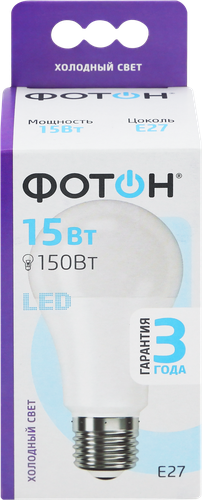 Фотон Лампа светодиодная LED A60 15W E27 6500K 23394