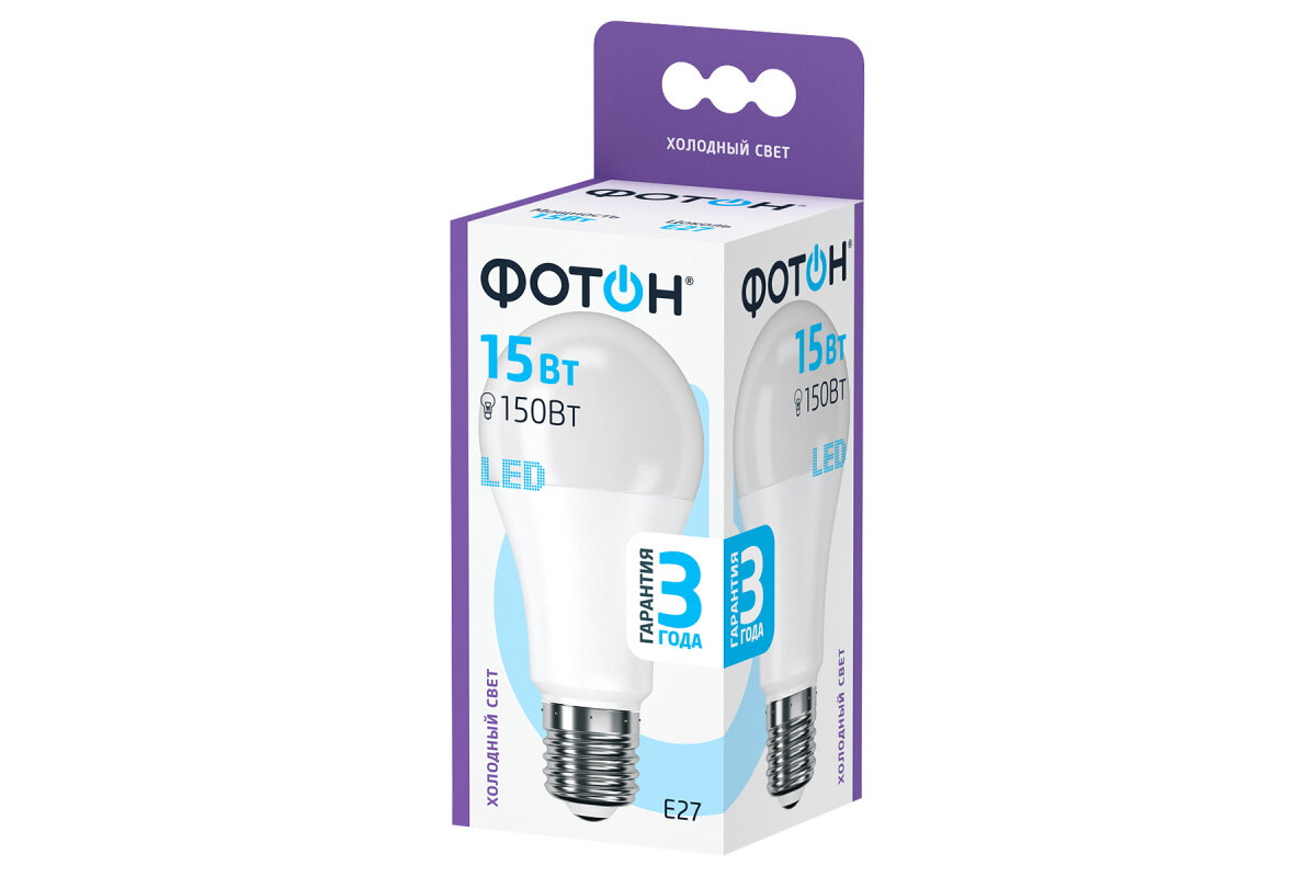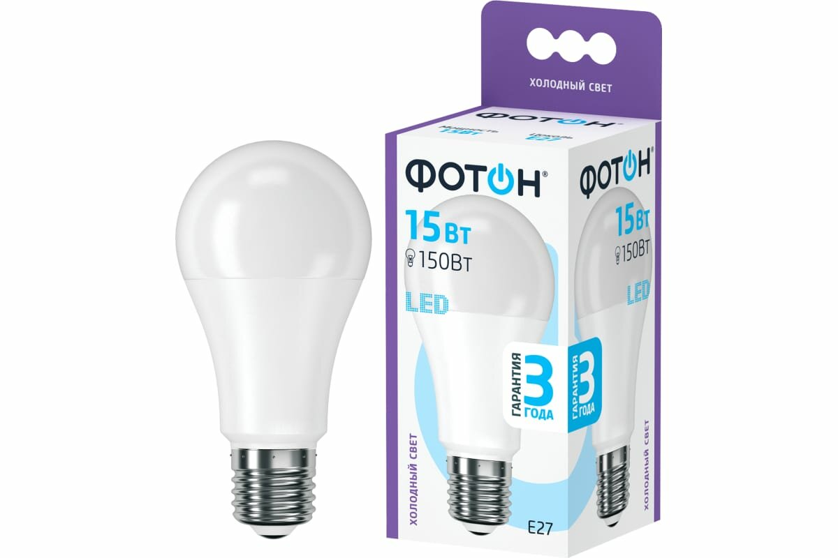 Светодиодная лампа фотон LED A60 15W E27 6500K 23394 интересное: