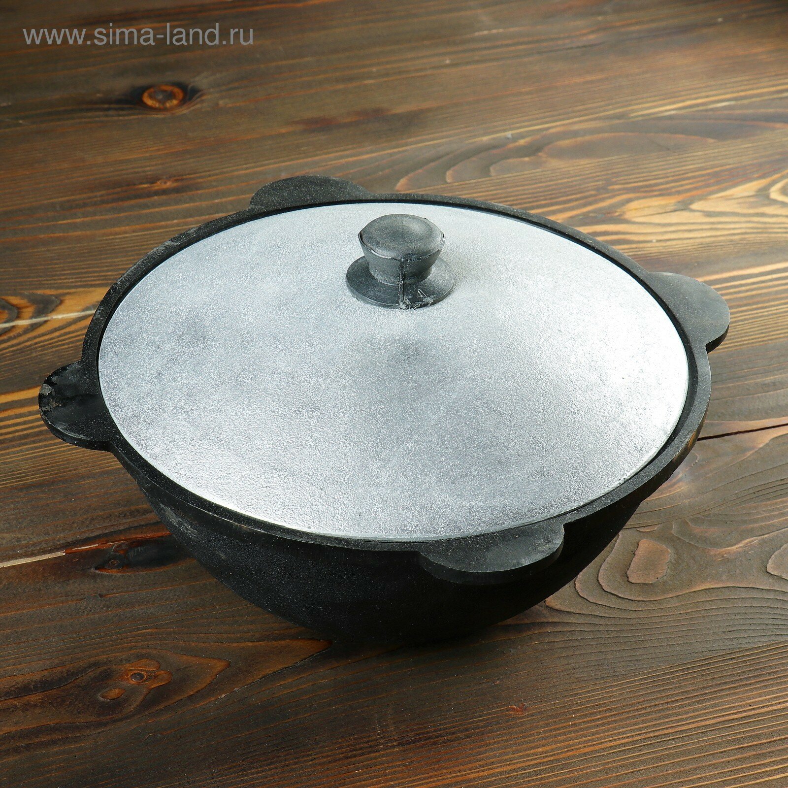 Казан чугунный, 8 л, плоское дно, алюминиевая крышка