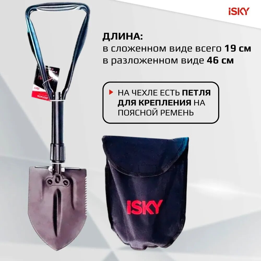 ISKY ISUS19 Лопата саперная iSky, металлическая, складная, черная, в чехле