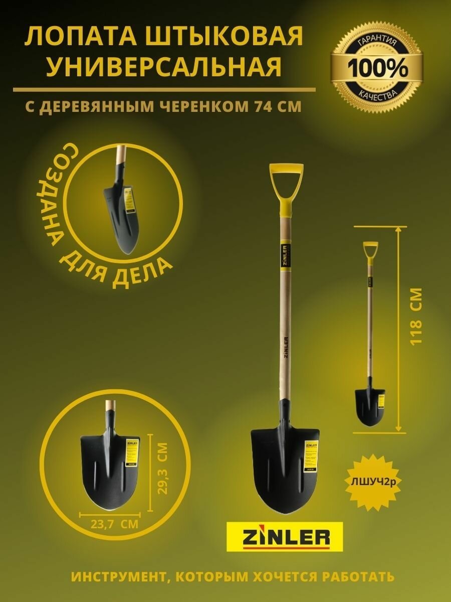 ZINLER Лопата штыковая универсальная с деревянным черенком 740 мм и ручкой Z1.2H2G интересное:
