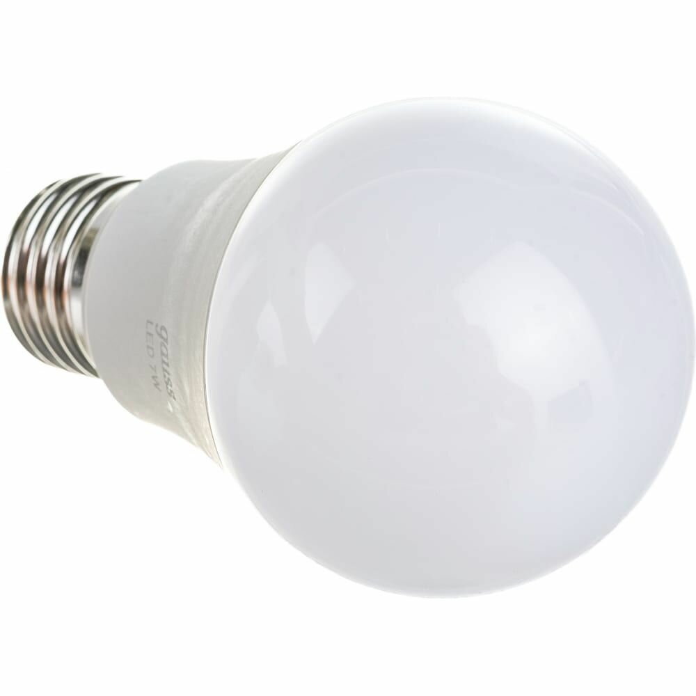 (1 шт.) Светодиодная лампочка Gauss ЛОН A60 E27 7W(680 lm) 2700K 60х110, пластик/алюм., матовая 102502107 Теплый белый. Цоколь E27