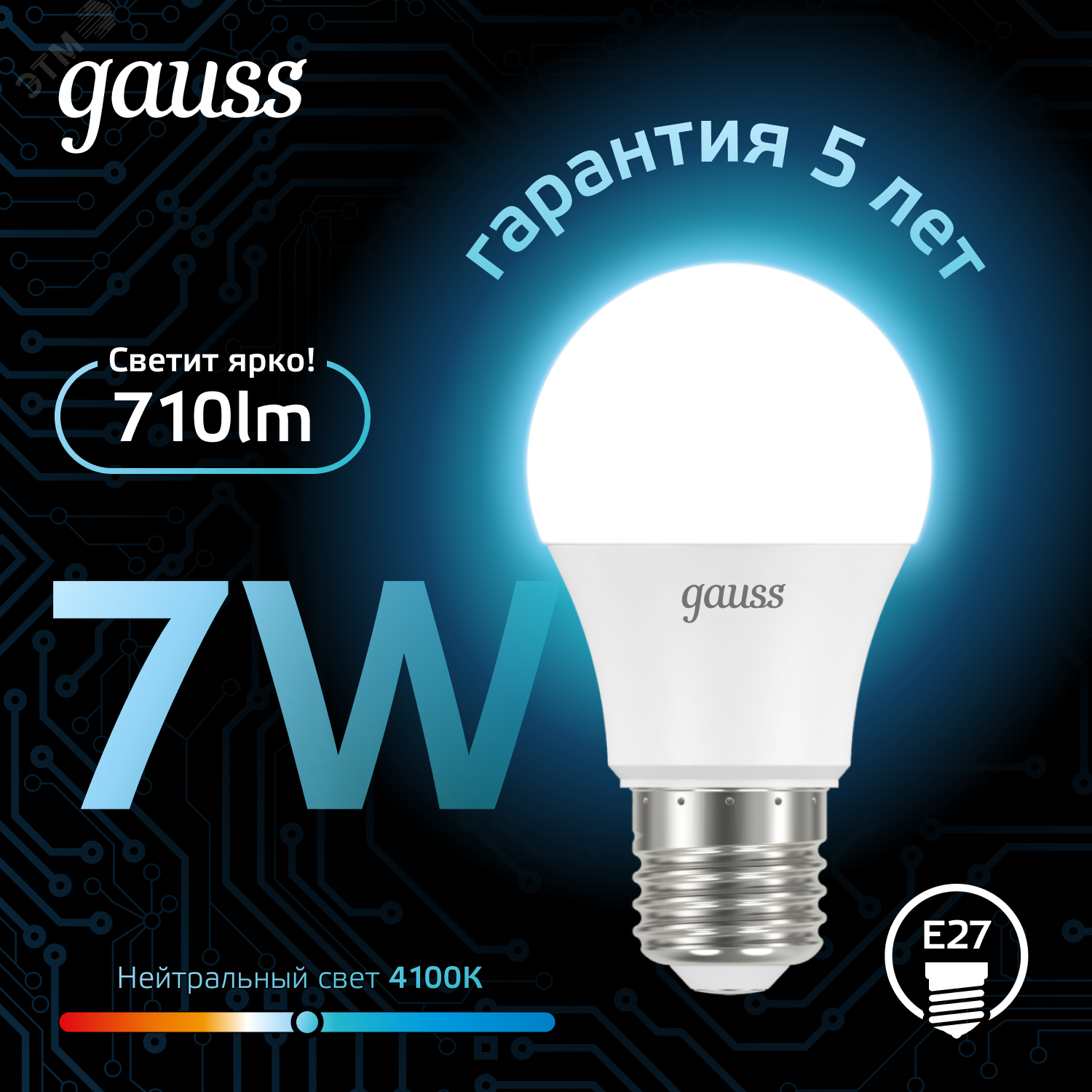 Gauss Лампа LED A60 E27 7W 4100K SQ 102502207