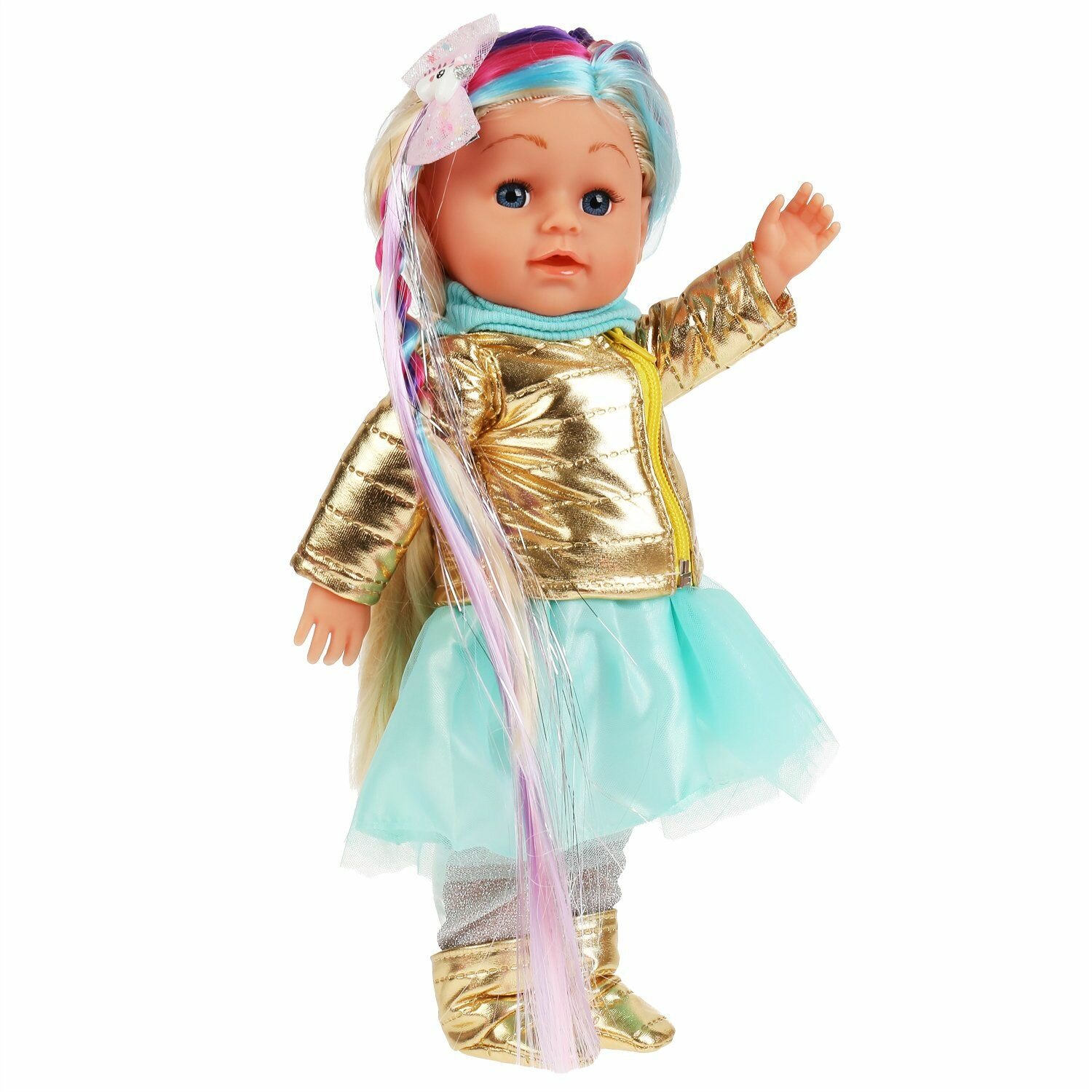 Кукла функциональная Карапуз Полина 35 см с цветными прядями, абвгдйка песня, с аксессуарами