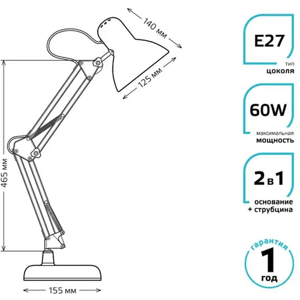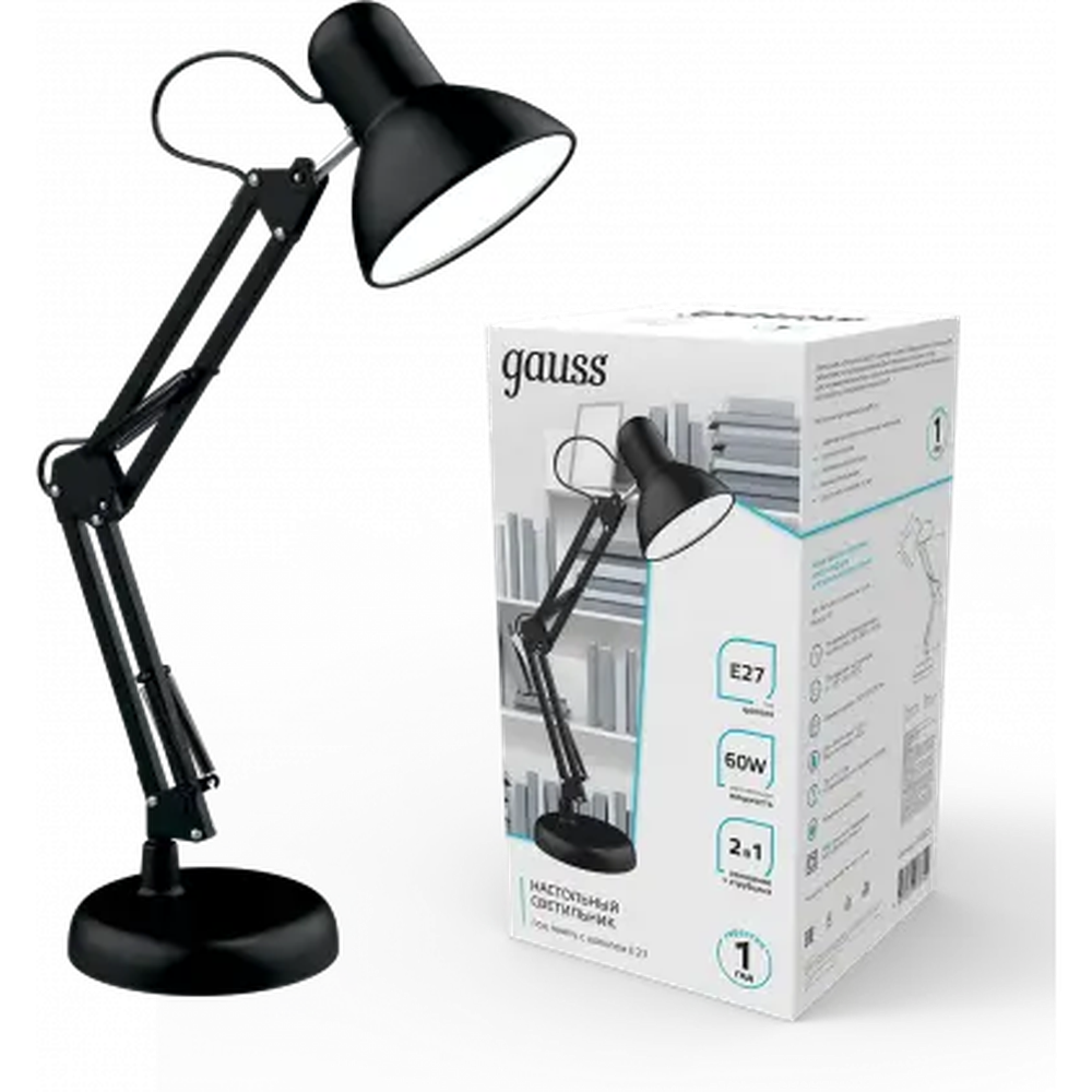 Настольная лампа GAUSS GTL002 60W 220-240V E27 черный струбцина и основание 1/12