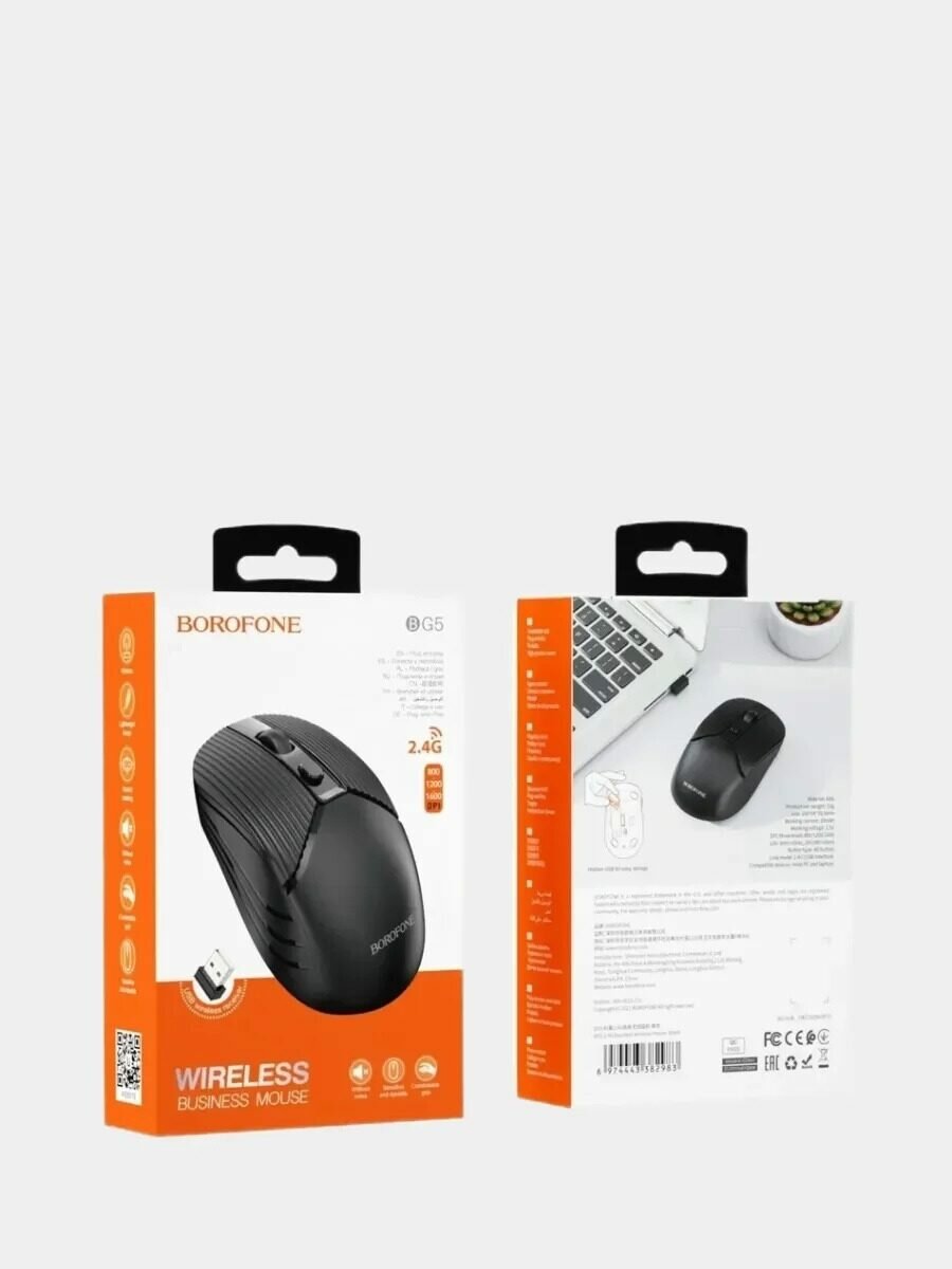 Купить Мышь Borofone BG5, беспроводная, оптическая, 1600 dpi, от одной батарейки ААА, чёрная 9088694