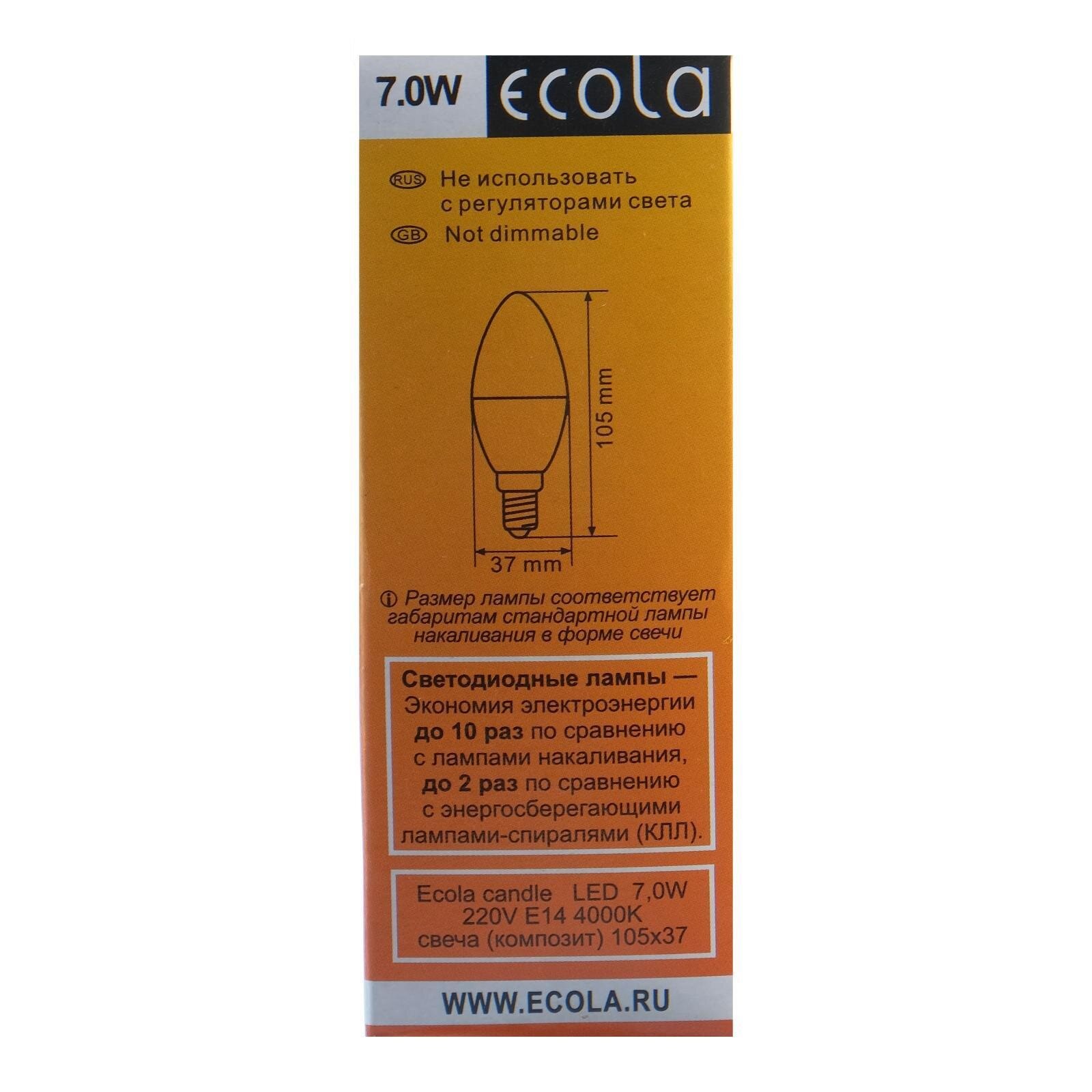 Светодиодная лампа Ecola 7W/C37/220V/E14/4000K