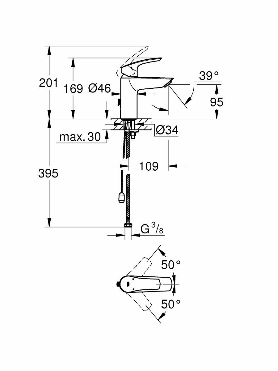 Смеситель для раковины Grohe Eurosmart с цепочкой, хром (33188003)