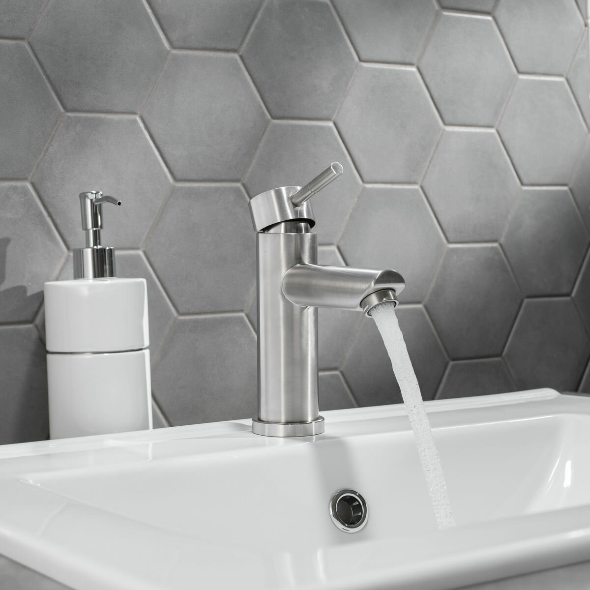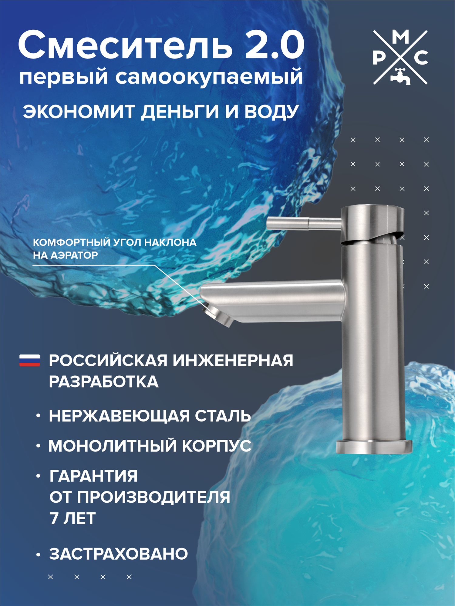 Смеситель для раковины, РМС SUS124-001F, для умывальника, нержавеющая сталь, монолитный излив, рычажное управление, с гибкой подводкой интересное: