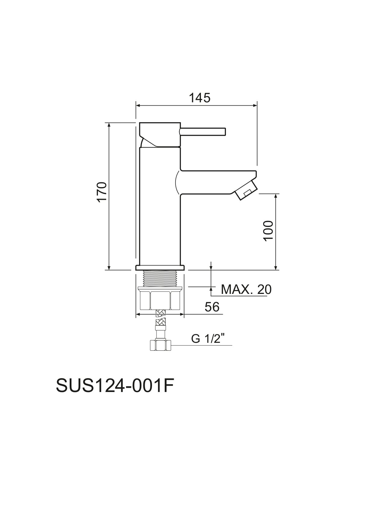 Смеситель для раковины RMS SUS124-001F, однорычажный, керамический картридж d=35 мм, хром