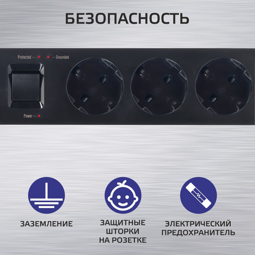 | Отзыв: | Кабель достаточно длинный 3м., мне для небольшой квартиры хватает вполне. Есть защитные шторки, для меня это важно, так как в доме есть маленькие дети. Не перегревается, даже если все три гнезда заняты. Есть юсб-порты и функция быстрой зарядки |