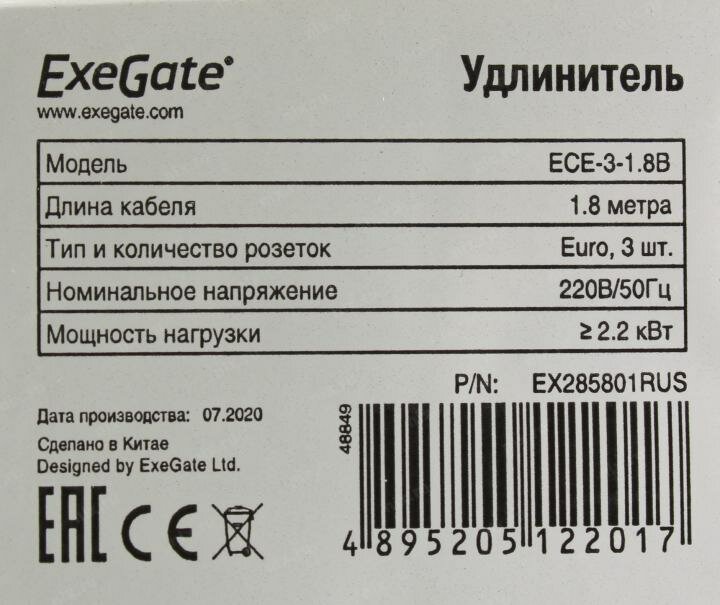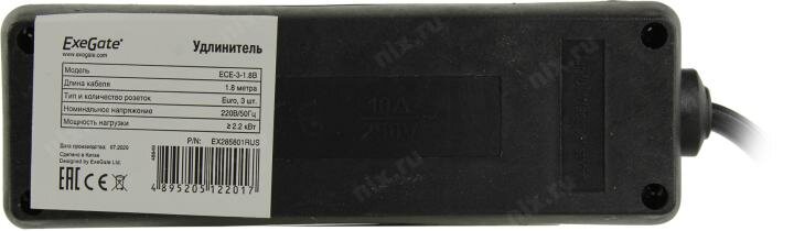 СохранитьСетевой фильтр ExeGate EX285801RUS ECE-3-1.8B (3 евророзетки с заземлением, 1.8м, черный) интересное:
