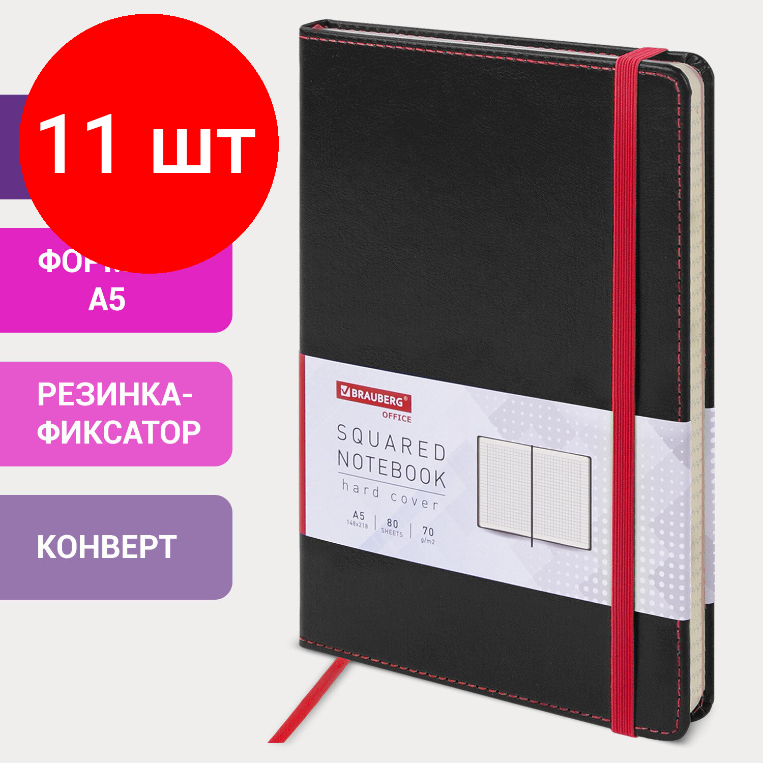 Купить Комплект 11 шт, Блокнот в клетку с резинкой А5 (148x218 мм), 80 л., под кожу черный BRAUBERG "Office", 111027