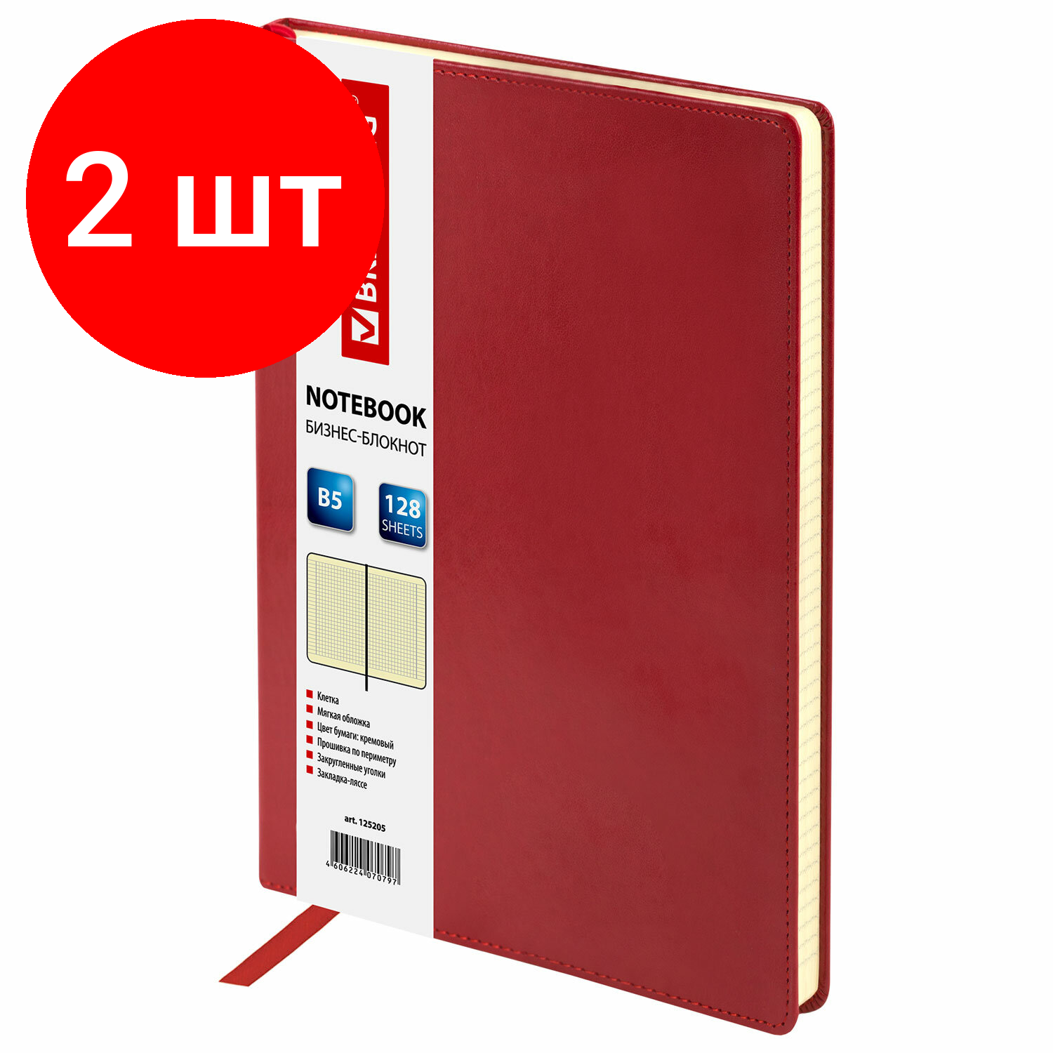 Купить Комплект 2 шт, Блокнот большой формат (200х252 мм) В5, BRAUBERG "Income", кожзам, 128 л., клетка, красный, 125205