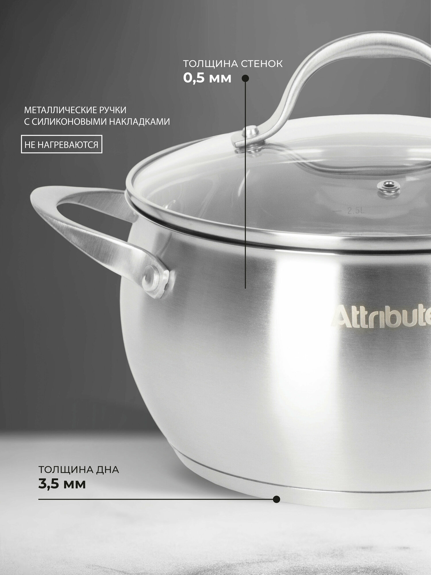 Купить Набор кастрюль ATTRIBUTE из нержавеющей стали для индукционных плит / кастрюля с крышкой 3.4 л + ковш с крышкой 1.7 л