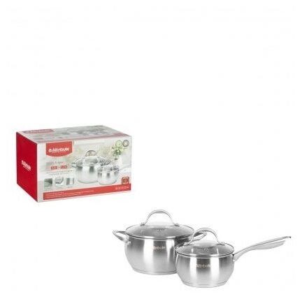 Набор посуды из нержавеющей стали FANCY 4пр.: ковш 1.7л + кастрюля 3.3л,ATTRIBUTE