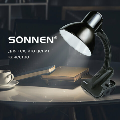 Настольная лампа-светильник SONNEN OU-108, на прищепке, цоколь Е27, черный, 236679 В комплекте: 1шт.