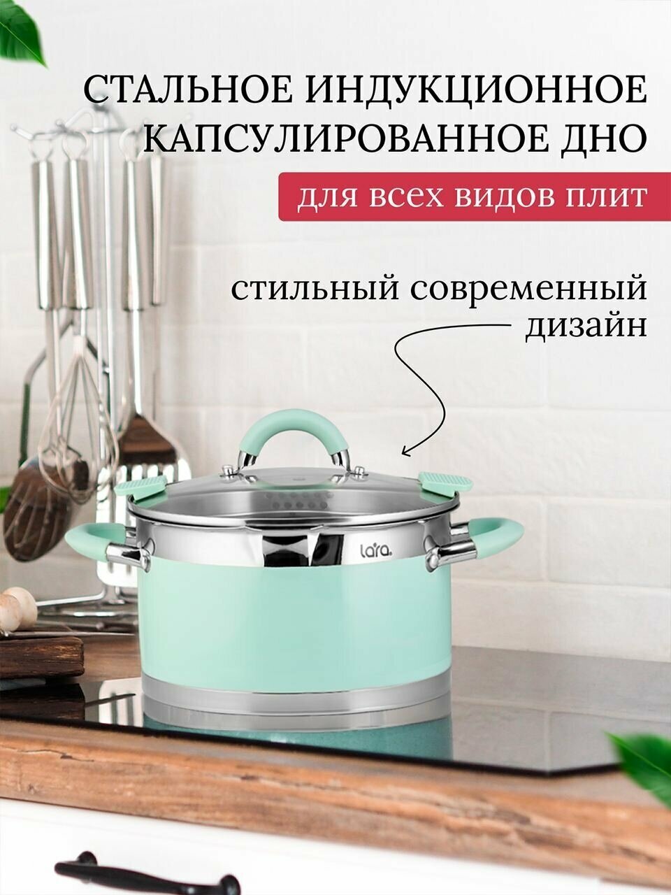 Кастрюля LARA MINT LR02-541, 2,4л, 18x10 см, индукц. дно, крышка-дуршлаг