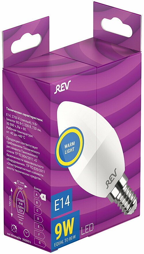 Лампа светодиодная REV свеча C37 9Вт E14 2700K 720Лм 32410 2