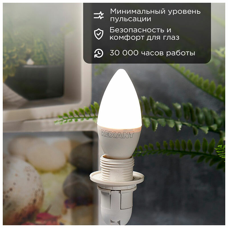 Лампа светодиодная REXANT 604-017 / 604-019, E14, 7.5 Вт, 2700 К