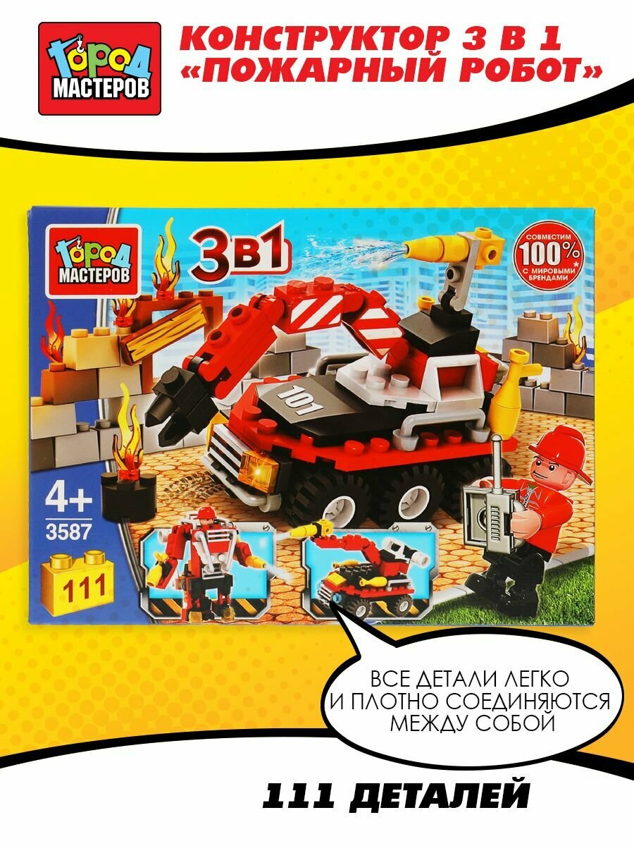 Купить Конструктор пожарный робот 3 В 1 серия пожарная служба 111 деталей город мастеров 3587-CG
