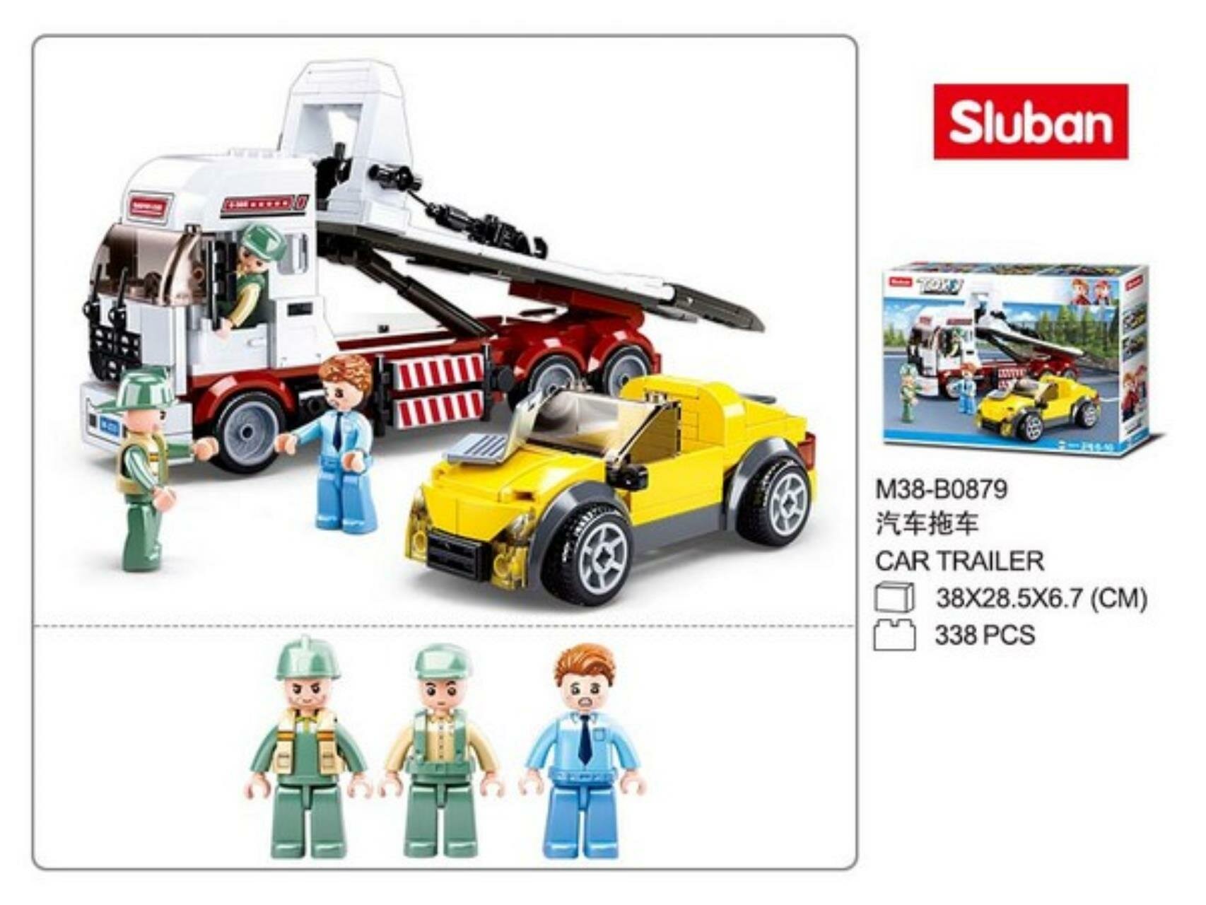 Конструктор Sluban "Город", Перевозчик машин, блочный, 38х38,5 см, 338 деталей, 3 фигурки (M38-B0879)