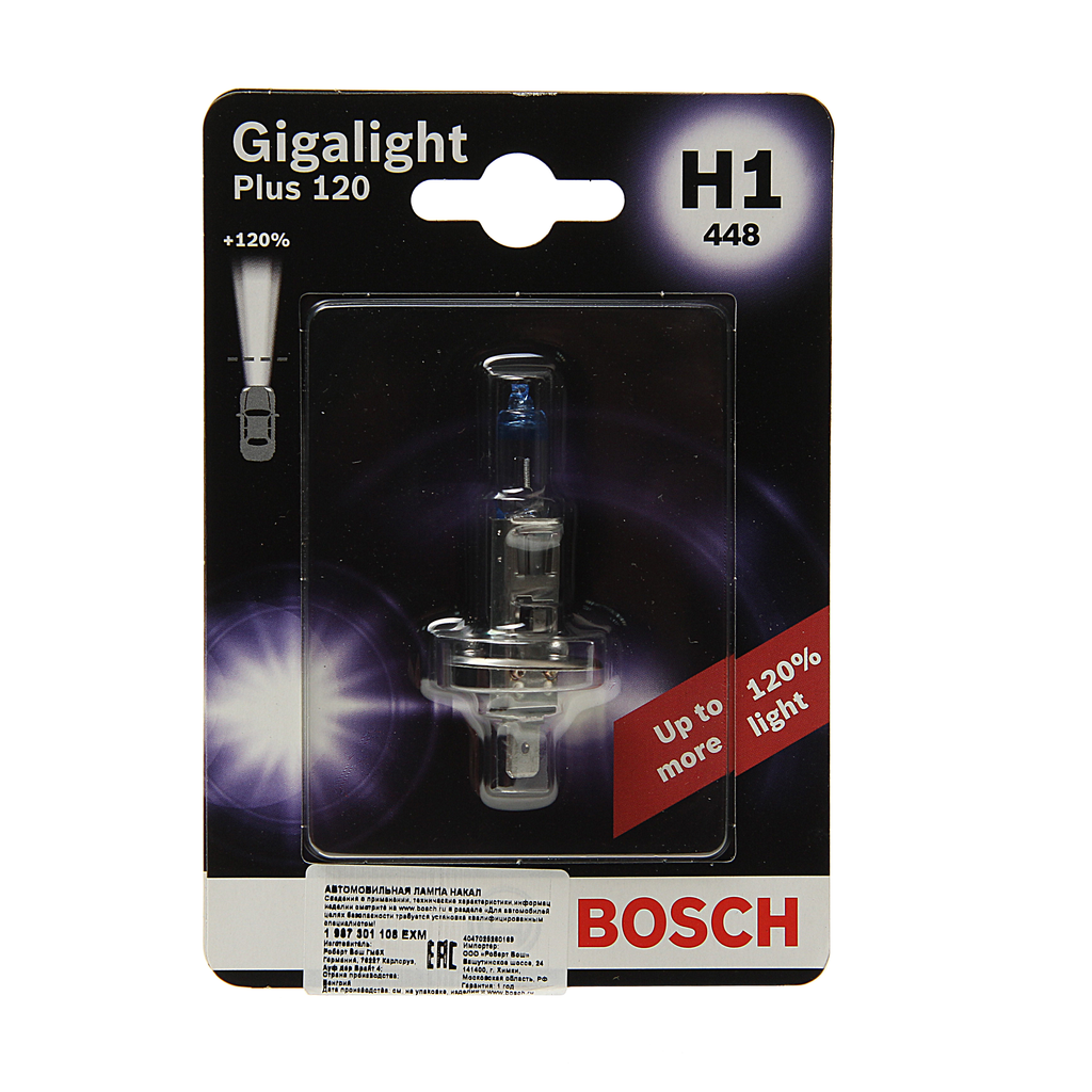 Лампа 12V H1 55W +120% Gigalight Plus 120 1 Шт. Блистер Bosch арт. 1 987 301 108