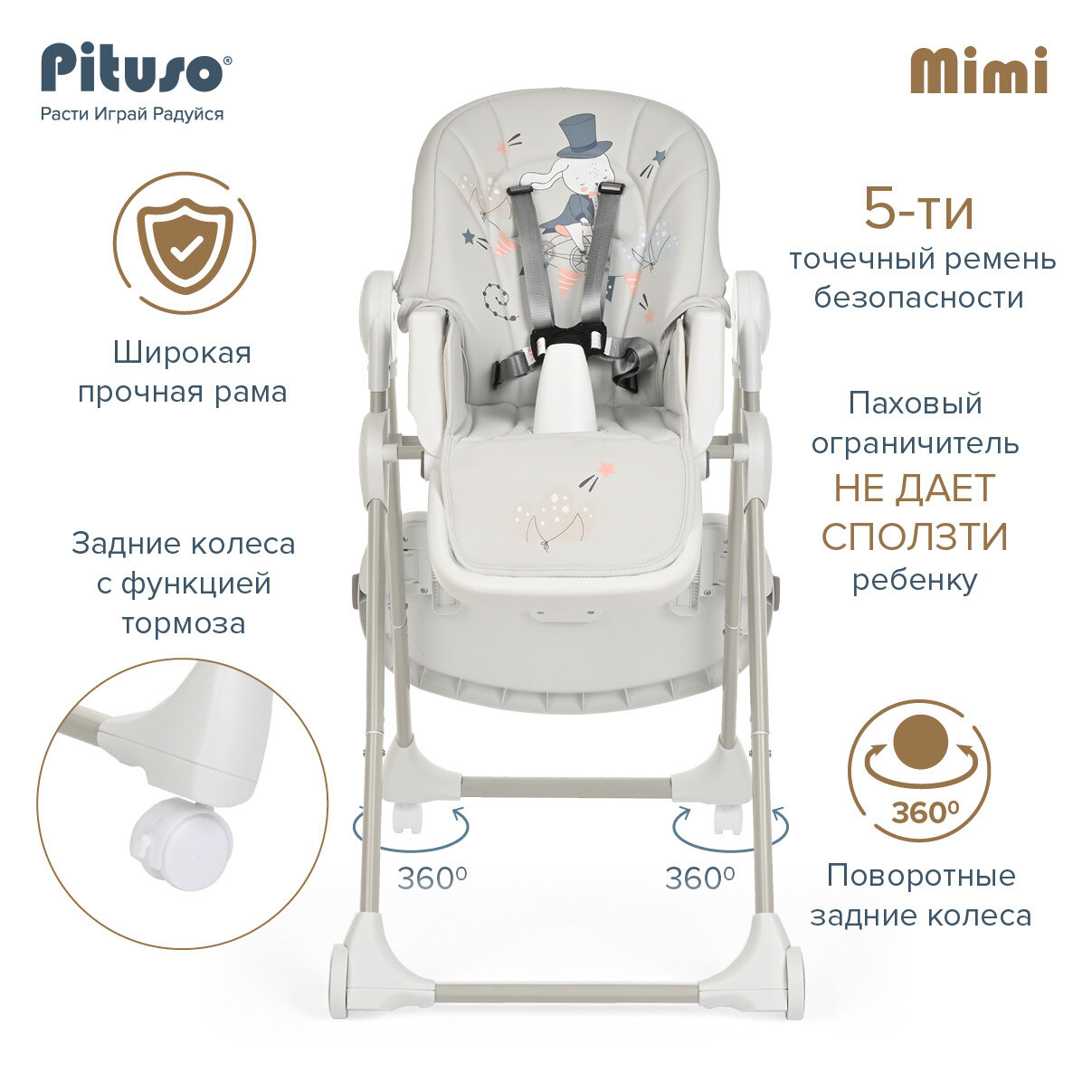 Купить Стульчик для кормления Pituso Mimi Эко-кожа Серый Зайка