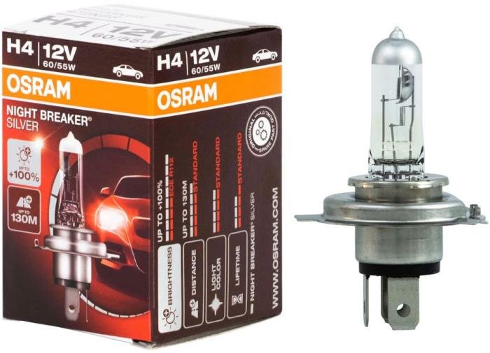 Лампа H4 12V 60/55W P43t NIGHT BREAKER SILVER +100% больше света 1 шт.
