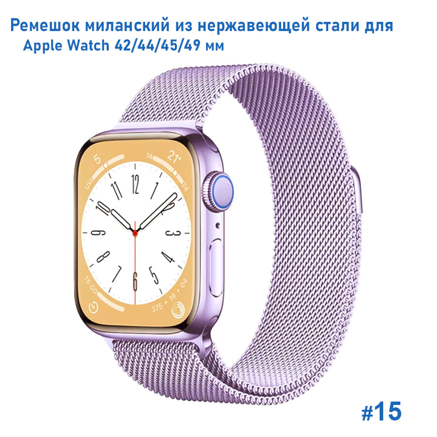 Ремешок миланcкий из нержавеющей стали для Apple Watch 42/44/45/49мм (26), сиреневый, на магните